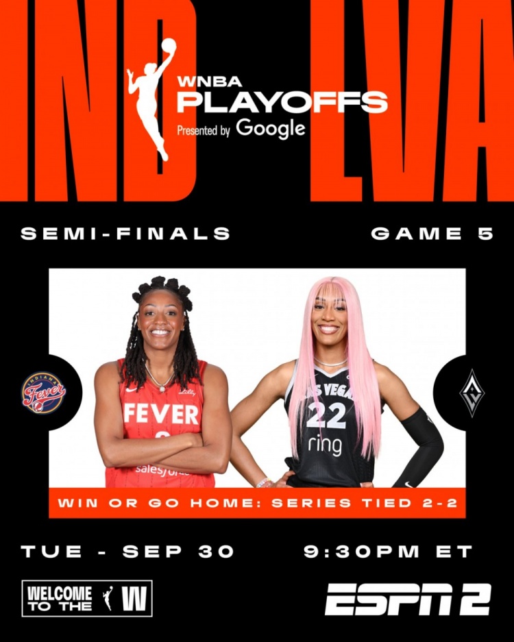 10月1日讯 WNBA季后赛半决赛G5,拉斯维加斯王牌今日坐镇主场迎战印第安纳狂热,双方在前四场比赛战至2-2平,因此本场将直接决出总决赛第二支队伍。