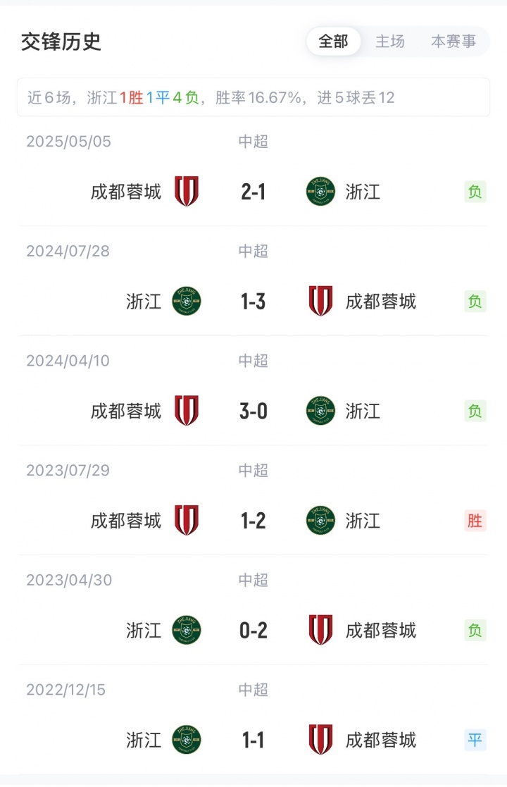 积分榜方面,浙江近5轮不败,目前10胜8平7负,积38分排名第7;蓉城在上轮绝平申花,近8轮不败,目前54分排名榜首。