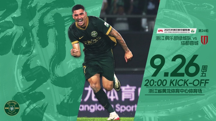 09月26日讯 北京时间今晚20点,中超第26轮,浙江vs蓉城,赛前首发阵容出炉!